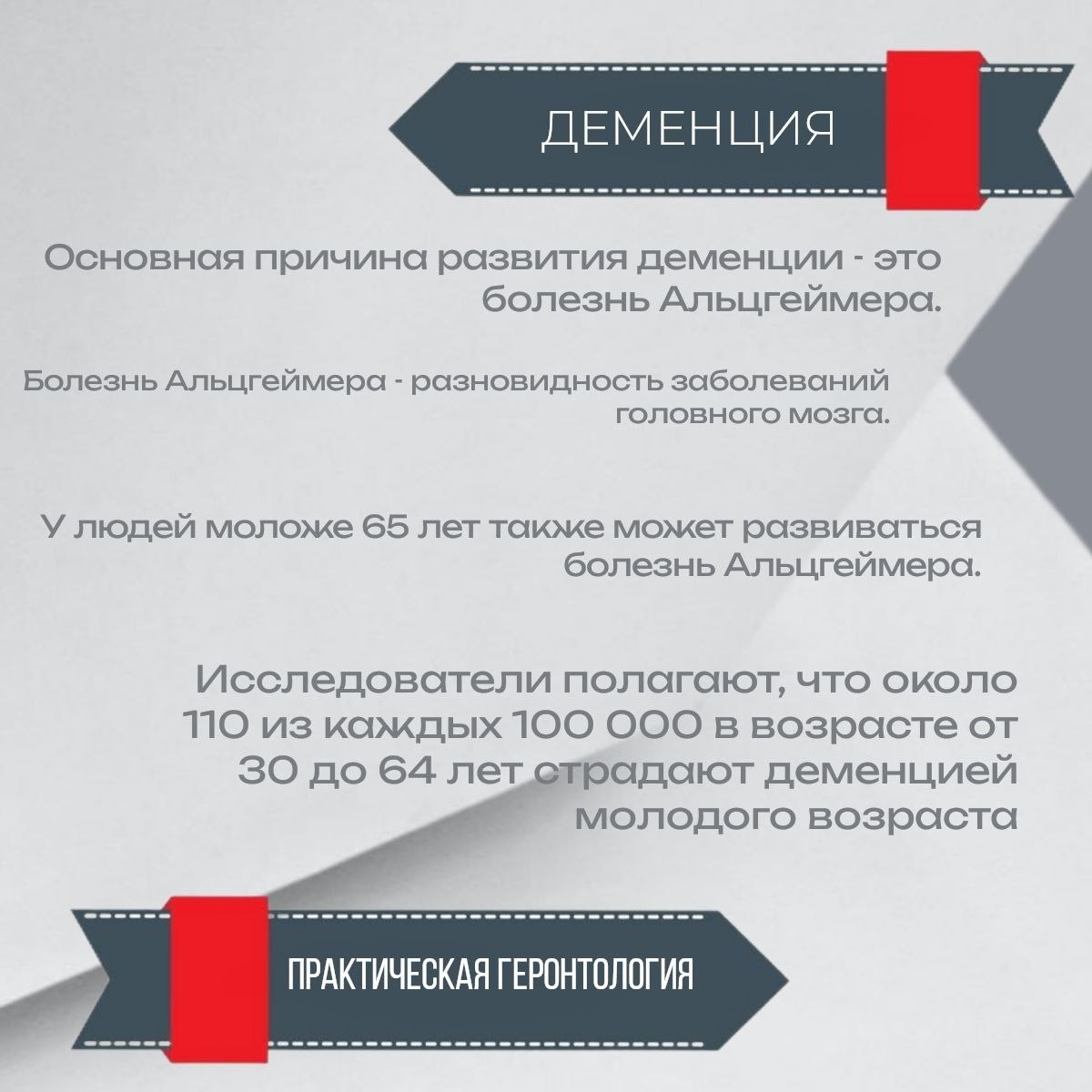 Основная причина развития деменции - это болезнь Альцгеймера. Основные больные - люди старшего поколения. 1 из 7 человек старше 80 лет страдает деменцией.