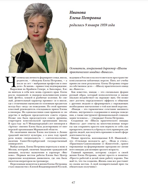 "Человек Тысячелетия" : Елена Петровна Иванова.