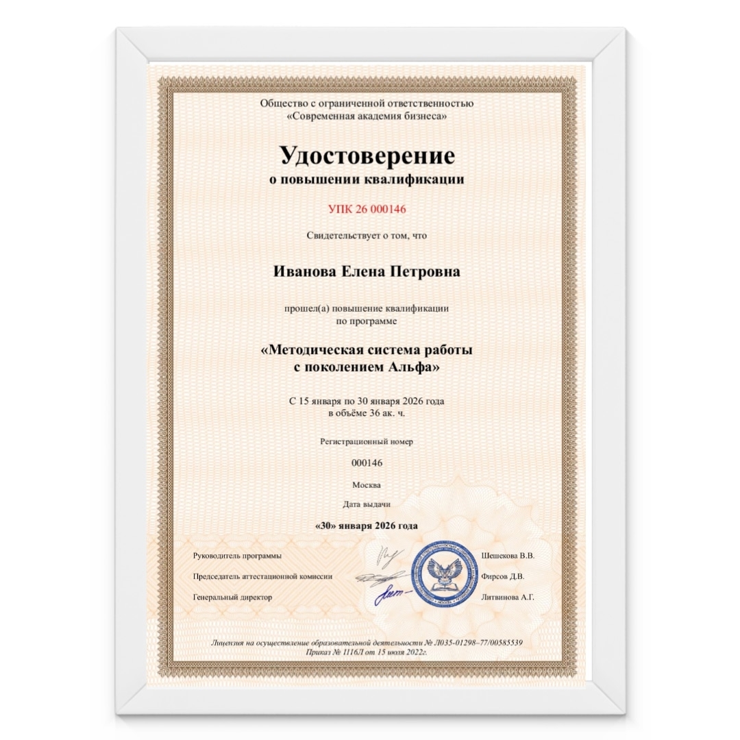 Так практика привела меня на специальный курс по методической системе работы с поколением Альфа. Вот пришло Удостоверение о повышении квалификации. Программа оказалась очень внятной, практичной. Дала мне нужные ответы и то самое понимание, которое искала.