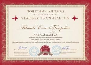 2024 г. Почетный Диплом "Человек Тысячелетия". За профессиональное мастерство и и созидательный труд