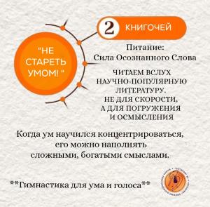 Практика "Книгочей" по праву стала являться частью Проекта "Не Стареть Умом", созданного как единый путь, как маршрут к себе самому настоящему. как выстроенная система, где каждая практика усиливает другую, оказывая общее воздействие на все функции человека: когнитивные, физические, эмоциональные и духовные.