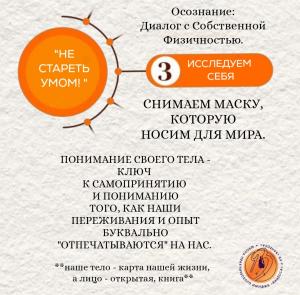 Образ Тела - наша новая карта реальности. Это не то, как мы выглядим в зеркале. Это - внутренняя, неосознаваемая карта тела в нашем мозгу: как оцениваете свою силу, свои границы, свои движения, как чувствуете каждую часть себя. С годами эта карта часто "замыливается". Внутренний Образ себя становится меньше, беднее, чем реальные, хоть и изменившиеся возможности. Но через эту карту идет наше взаимодействие с миром. Если карта искажена или скудна, мир становится тесным и враждебным. если точна и богата, вы находите в себе ресурсы для радости, движения и интереса к жизни, даже с учетом возраста.